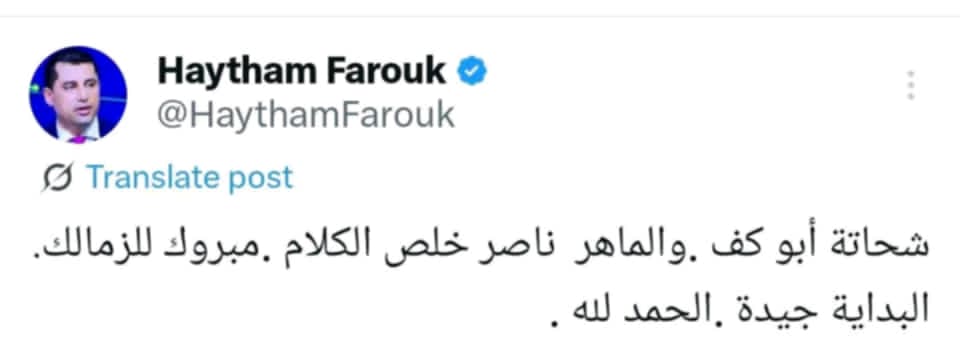 وكتب هيثم فاروق عبر حسابه على موقع التواصل الاجتماعي تويتر قائلا: