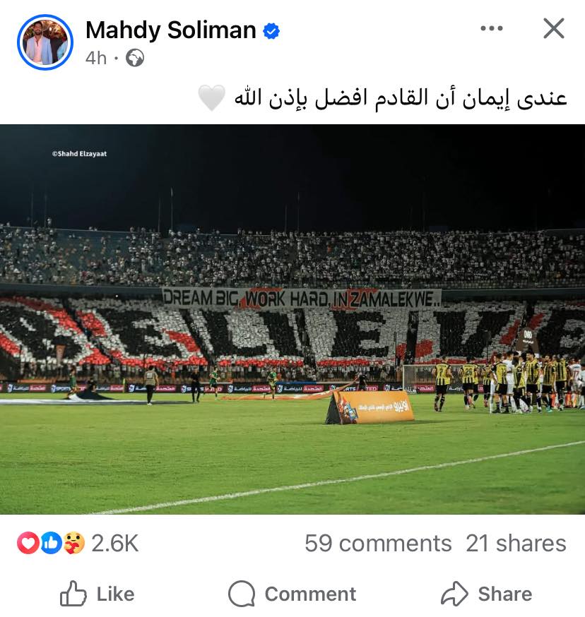 وعبر صفحته الشخصية على موقع التواصل الاجتماعى فيس بوك كتب المهدى سليمان قائلاً :