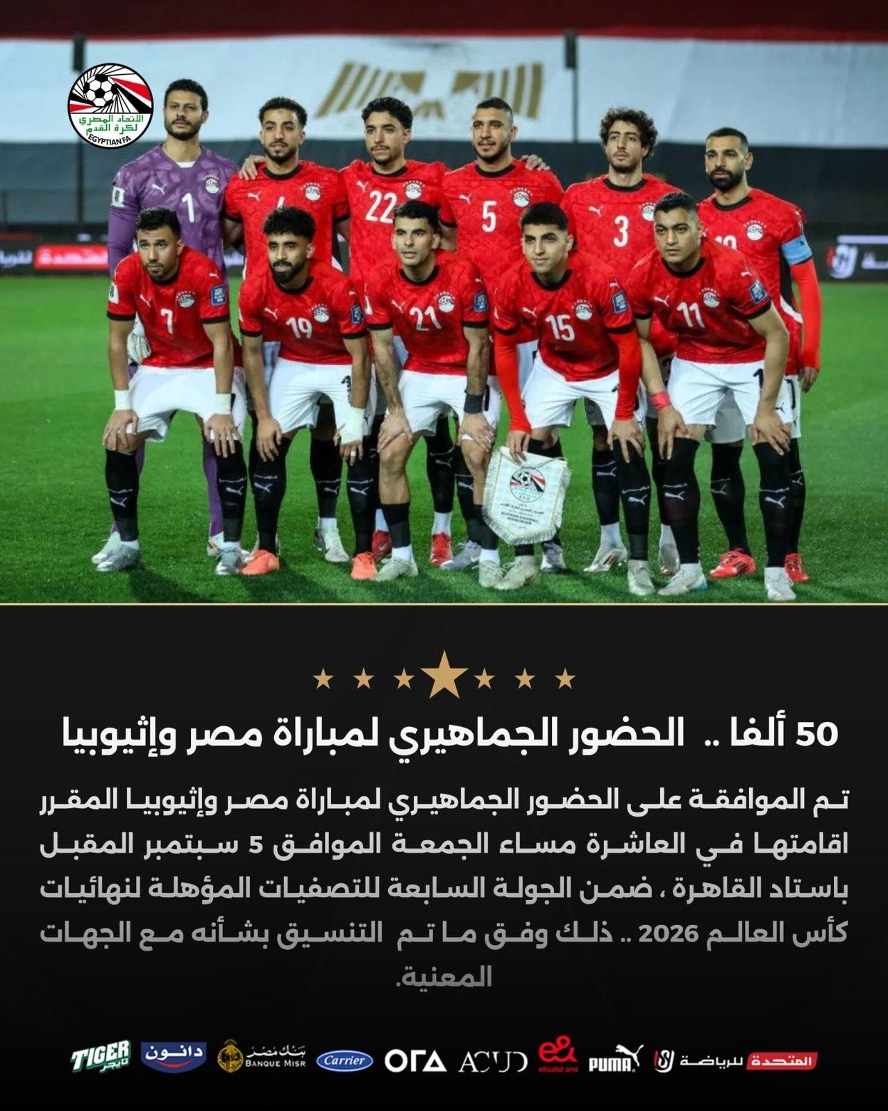 أعلن الاتحاد المصرى لكرة القدم عن عدد الجماهير المسموح بها فى مباراة مصر وإثيوبيا القادمة.