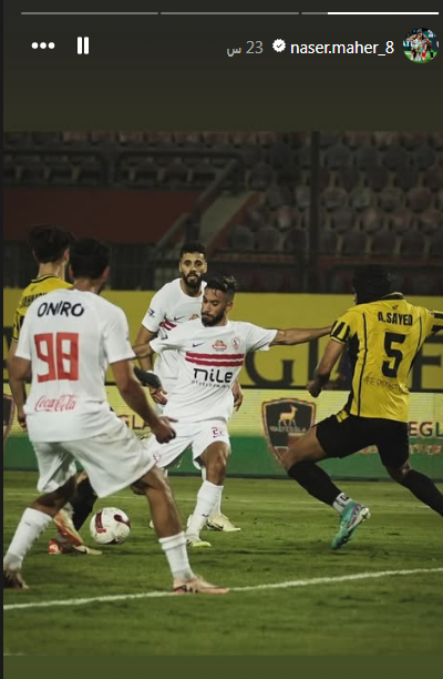 حيث نشر ناصر ماهر صورة له خلال الفرصة الغريبة التي أضاعها أمام فريق وادي دجلة خلال المباراة الأخيرة.