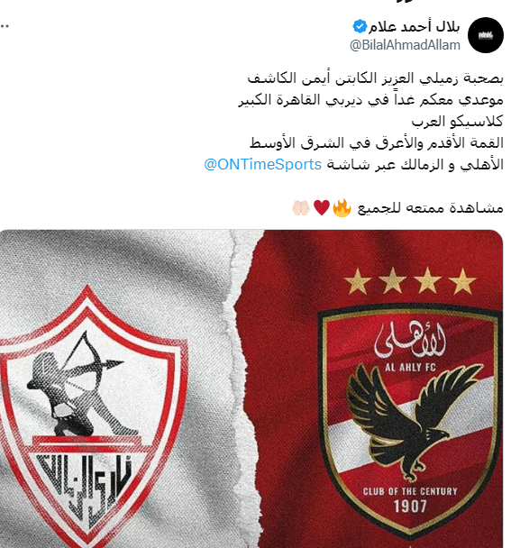 موعدي معكم غداً في ديربي القاهرة الكبير
