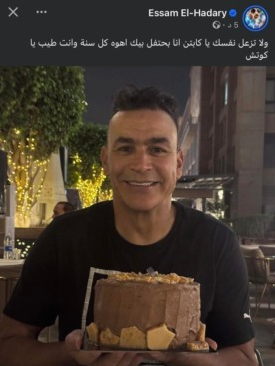 وكتب عصام الحضري من خلال حسابه على موقع التواصل الاجتماعي فيسبوك معلقا على صورة له وفي يديه تورتة قائلا: