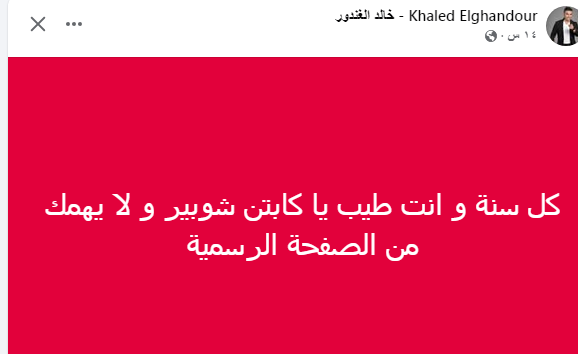 كل سنة و انت طيب يا كابتن شوبير و لا يهمك من الصفحة الرسمية