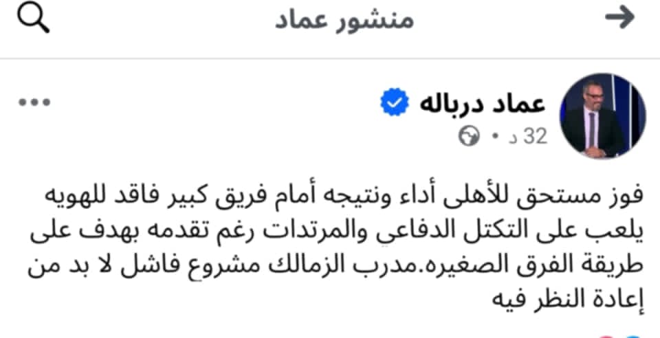 وعبر صفحته الشخصية على موقع التواصل الاجتماعى فيس بوك كتب عماد دربالة معلقاً :