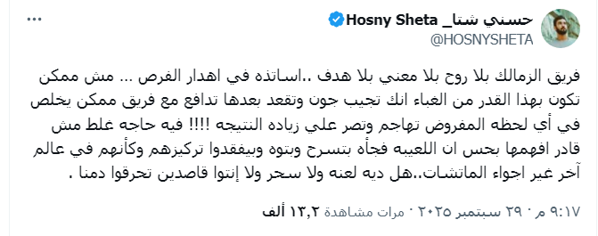 وعبر صفحته الشخصية على موقع التواصل الاجتماعى إكس كتب الفنان حسنى شتا :