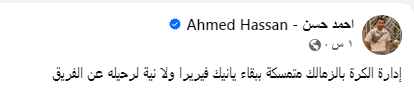 وكتب أحمد حسن عبر حسابه على موقع التواصل الاجتماعي فيسبوك قائلا: