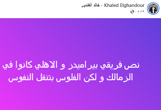 حيث كتب خالد الغندور من خلال حسابه على موقع التواصل الاجتماعي فيسبوك قائلا: