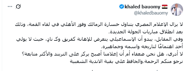وعبر صفحته الشخصية على موقع التواصل الاجتماعى إكس كتب خالد بيومى معلقاً :