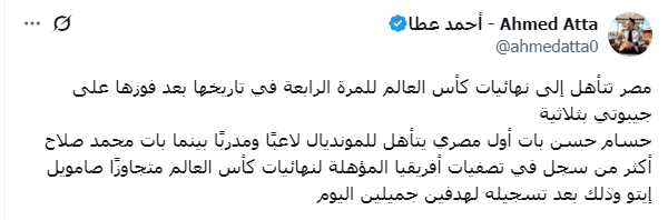 وعبر صفحته الشخصية على موقع التواصل الاجتماعى إكس كتب أحمد عطا معلقاً :