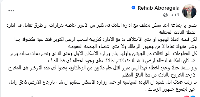 وما بين اتهامات لمجلس الادارة، وما بين مشهد على أرض الواقع علق رحاب أبورجيلة.