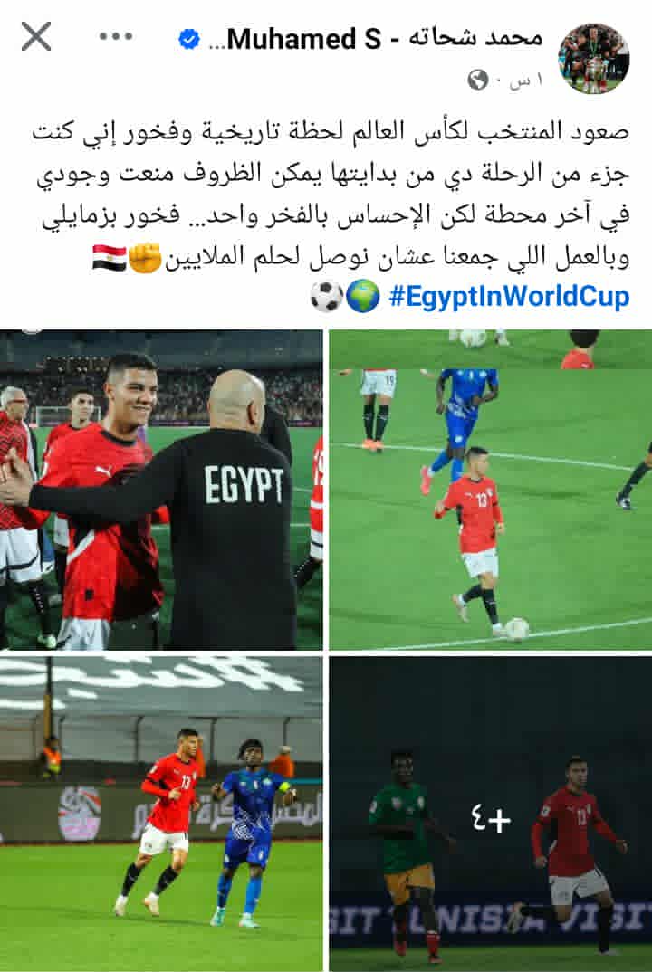 وعبر صفحته الشخصية على موقع التواصل الاجتماعى فيس بوك كتب محمد شحاتة قائلاً معلقاً :