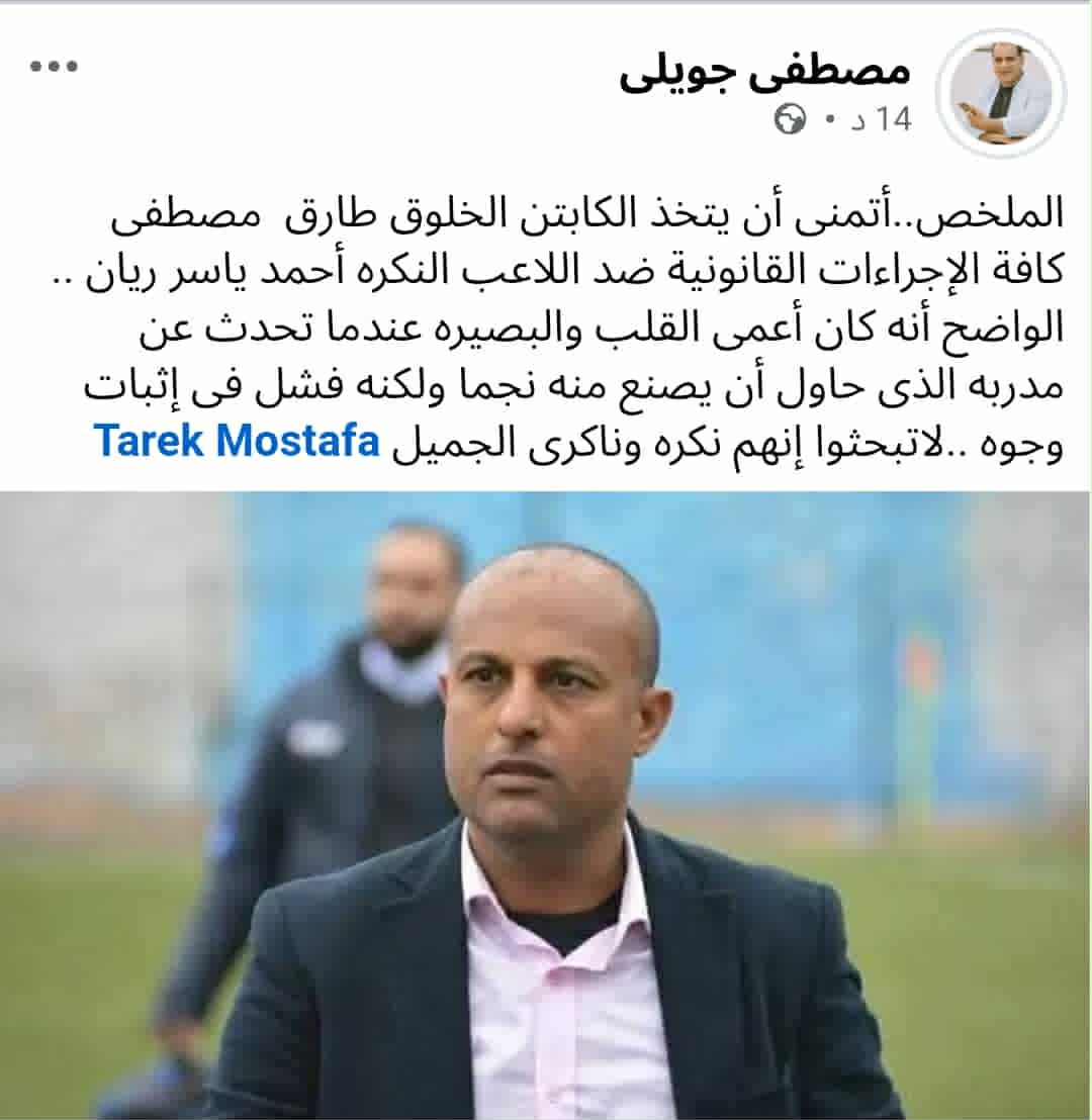 الملخص..أتمنى أن يتخذ الكابتن الخلوق طارق مصطفى كافة الإجراءات القانونية ضد اللاعب النكره أحمد ياسر ريان ..