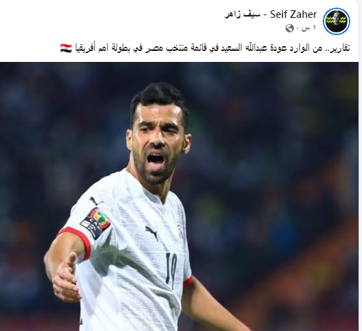 تحدث الاعلامي سيف زاهر أنه من الوارد تواجد عبد الله السعيد لاعب الزمالك مع منتخب مصر خلال بطولة أمم أفريقي القادمة.