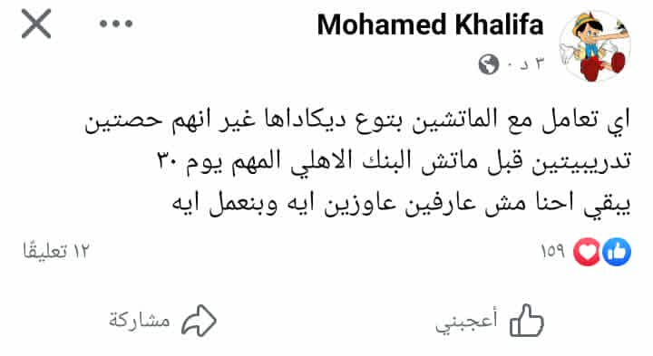 اي تعامل مع الماتشين بتوع ديكاداها غير انهم حصتين تدريبيتين قبل ماتش البنك الاهلي المهم يوم ٣٠