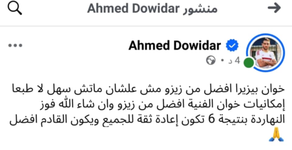 وعبر صفحته الشخصية على موقع التواصل الاجتماعى فيس بوك كتب أحمد دويدار معلقاً :