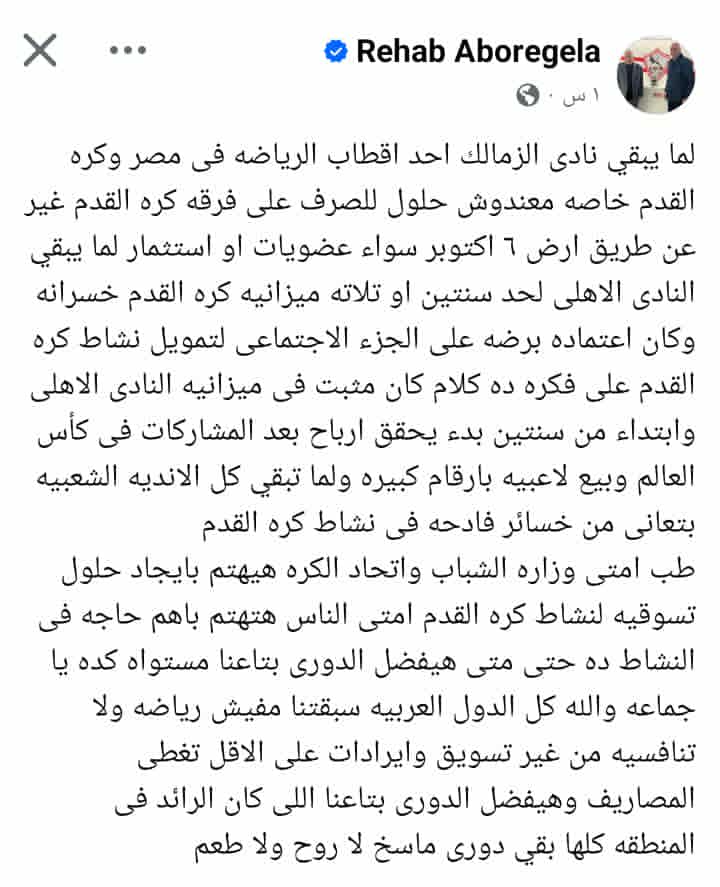 علق رحاب أبورجيلة عضو مجلس ادارة الزمالك السابق على المشهد الحزين داخل أروقة نادى الزمالك.