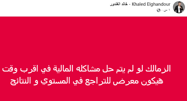 الزمالك لو لم يتم حل مشاكله المالية في اقرب وقت هيكون معرض للتراجع في المستوي و النتائج