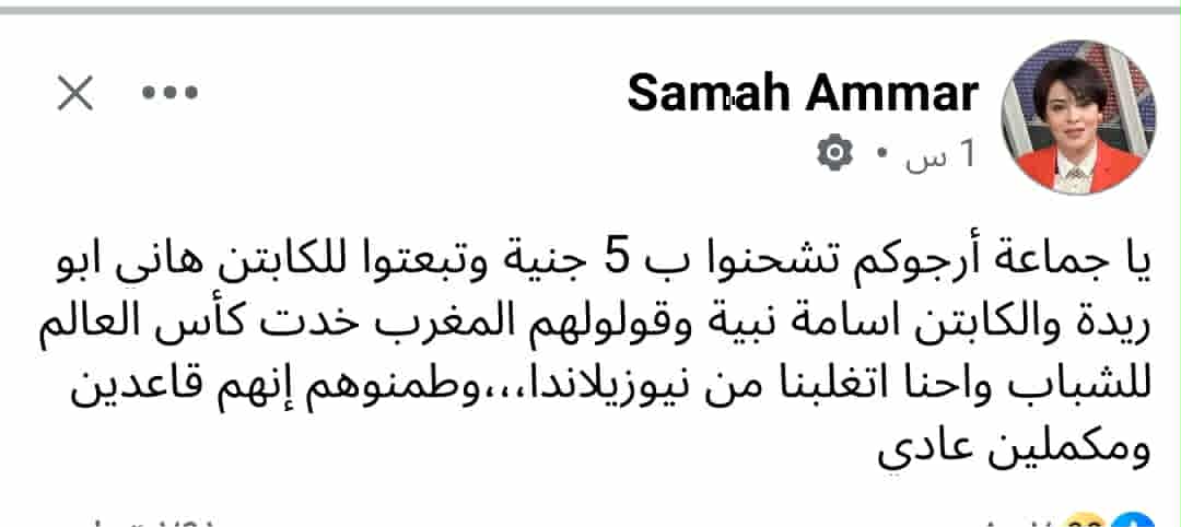 يا جماعة أرجوكم تشحنوا ب 5 جنية وتبعتوا للكابتن هاني ابو ريدة والكابتن اسامة نبية وقولولهم المغرب خدت كأس العالم للشباب واحنا اتغلبنا من نيوزيلاندا،،،وطمنوهم إنهم قاعدين ومكملين عادي