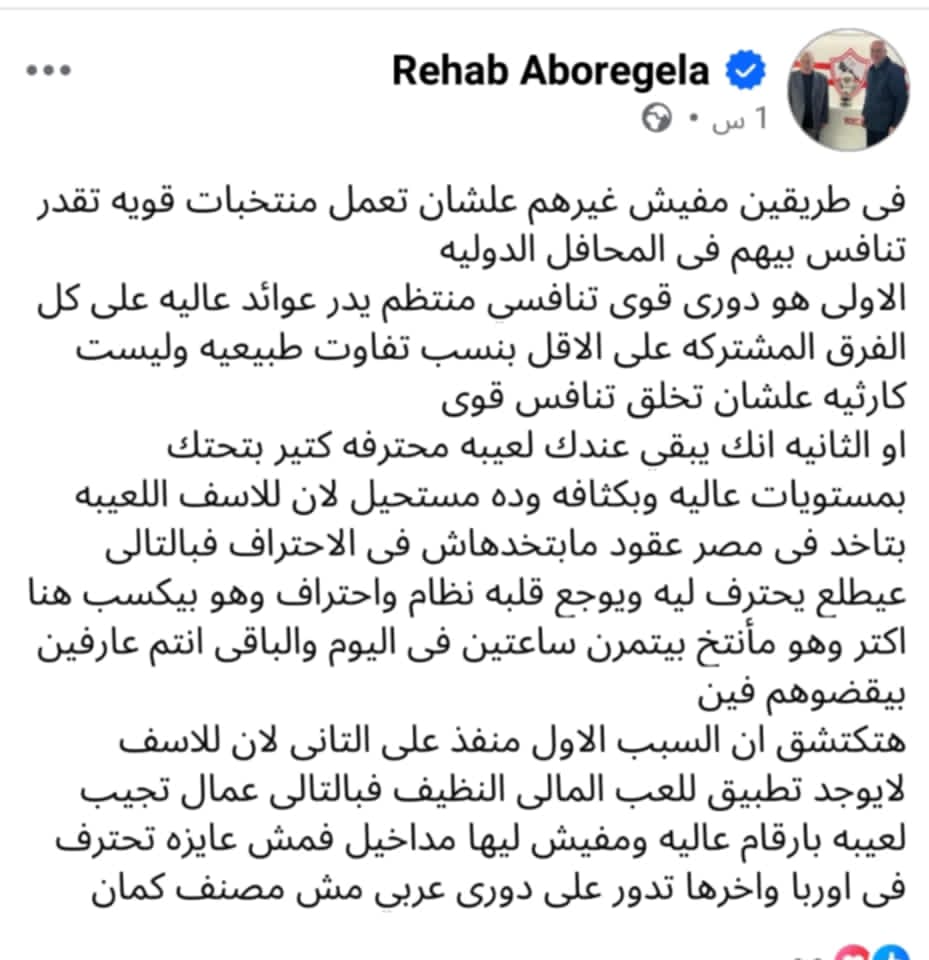 وعبر صفحته الشخصية على موقع التواصل الاجتماعى فيس بوك كتب رحاب أبورجيلة قائلاً :