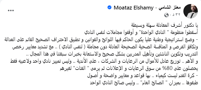 وعبر صفحته الشخصية على موقع التواصل الاجتماعى فيس بوك كتب معتز الشامى معلقاً :