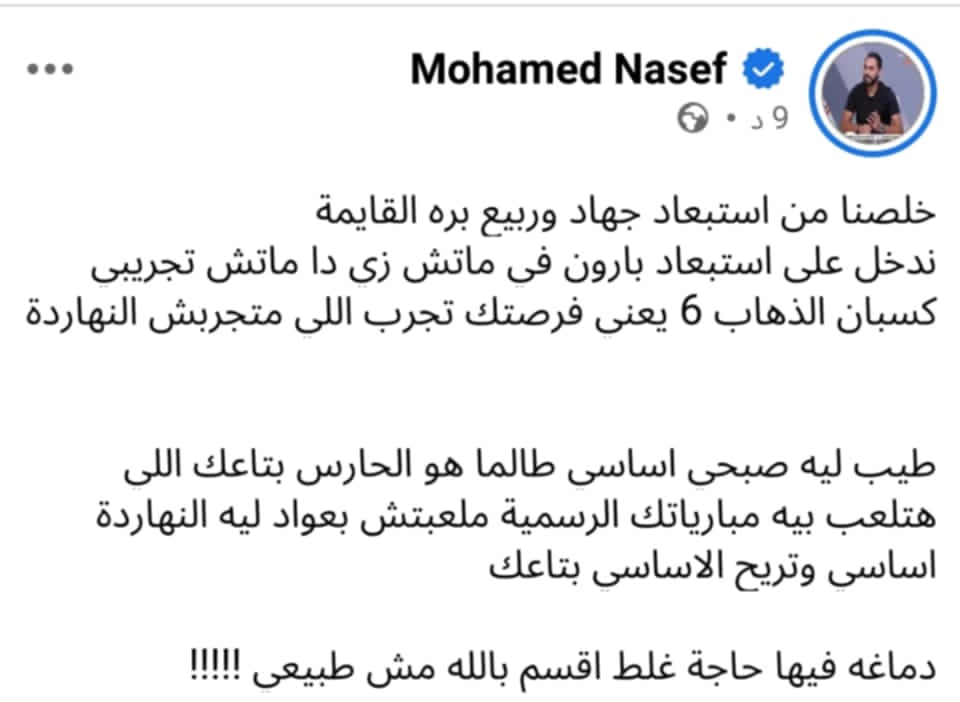 وعبر صفحته الشخصية على موقع التواصل الاجتماعى فيس بوك كتب محمد ناصف قائلاً :