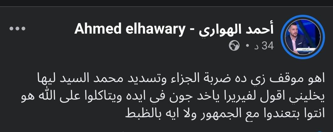 أحمد الهواري من خلال حسابه على موقع التواصل الاجتماعي فيسبوك تحدث قائلاً نصا: