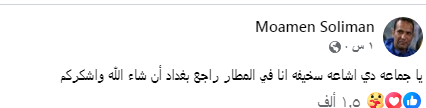 وكتب مؤمن سليمان عبر حسابه على موقع التواصل الاجتماعي فيسبوك قائلا: