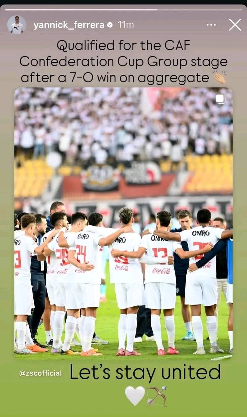وجه المدرب البلجيكي يانيك فيريرا المدير الفني للزمالك رسالة عقب التأهل الى دور المجموعات في بطولة الكونفدرالية الأفريقية