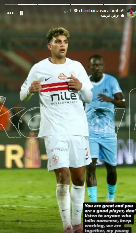 وجه اللاعب الأنجولي شيكوبانزا لاعب الزمالك رسالة دعم الى اللاعب محمد السيد لاعب خط وسط الفريق.