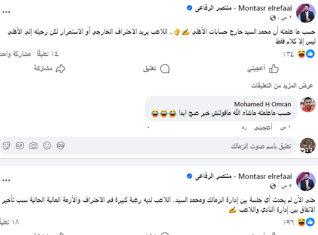 منتصر الرفاعي من خلال حسابه على موقع التواصل الاجتماعي فيسبوك قائلا: