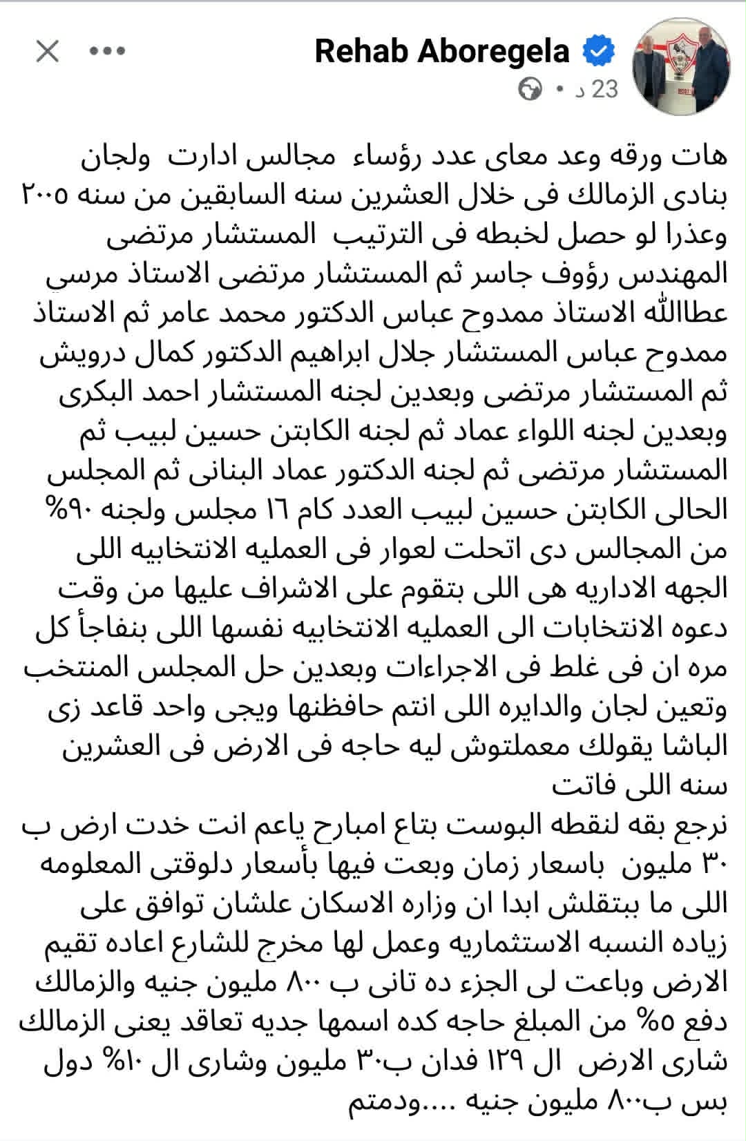 وعبر صفحته الشخصية على موقع التواصل الاجتماعى فيس بوك كتب رحاب أبورجيلة قائلاً :