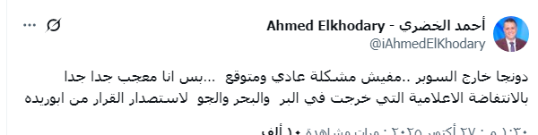 أحمد الخضري من خلال حسابه على موقع التواصل الاجتماعي تويتر كتب قائلا: