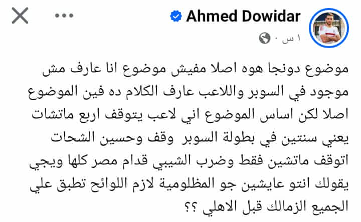 وعبر صفحته الشخصية على موقع التواصل الاجتماعى فيس بوك كتب أحمد دويدار معلقاً :