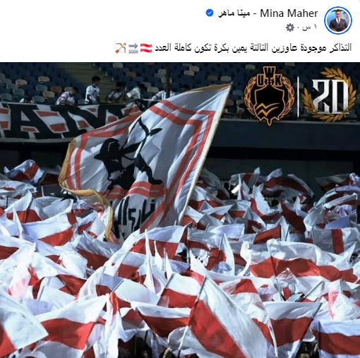 وجه الإعلامي مينا ماهر المذيع في قناة نادي الزمالك رسالة إلى الجمهور قبل مواجهة البنك الاهلي غداً الخميس.