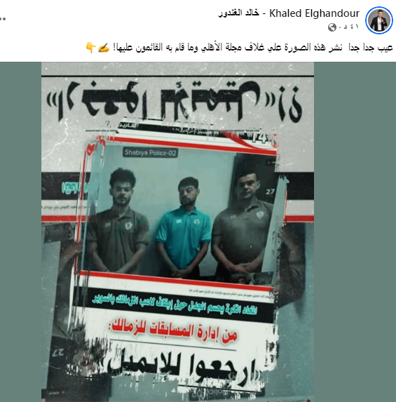 عيب جدا جدا نشر هذه الصورة علي غلاف مجلة الأهلي وما قام به القائمون عليها!