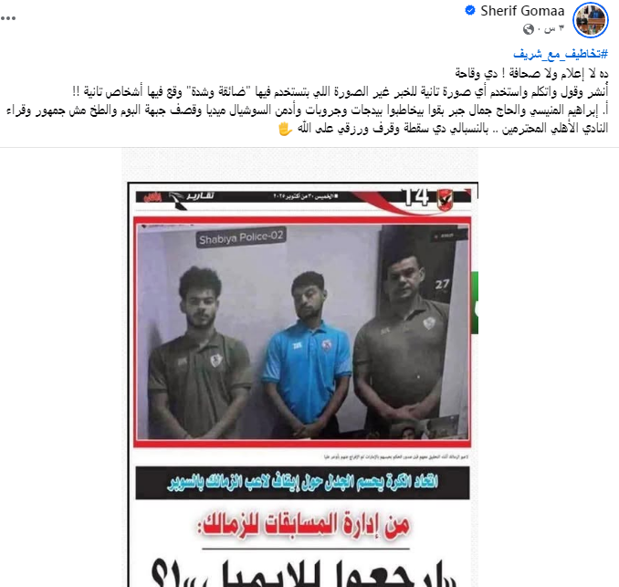 رفض الاعلامي الأهلاوي شريف جمعة اعادة نشر مجلة الأهلي صورة لأزمة ثلاثي الزمالك في الامارات خلال بطولة السوبر المصري الماضية.