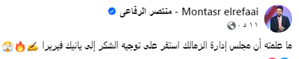 كشف الكاتب الصحفي منتصر الرفاعي عن استقرار الزمالك على  توجيه الشكر إلى يانيك فيريرا