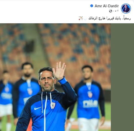 كشف الكاتب الصحفي عمرو الدردير عن استقرار الزمالك على  توجيه الشكر إلى يانيك فيريرا