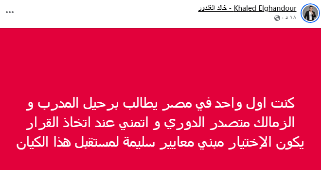 كنت اول واحد في مصر يطالب برحيل المدرب و الزمالك متصدر الدوري