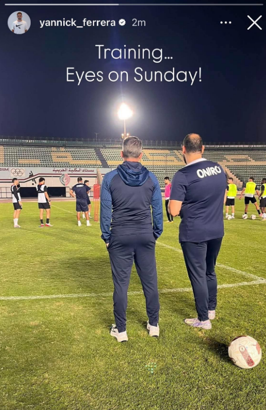 الصورة نشرها فيريرا من ملعب التدريب بصحبة مترجم الفريق ومحلل الأداء على ملعب الكلية الحربية، وعلق عليها