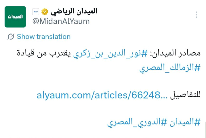 ذكرت صحيفة الميدان الرياضية السعودية نفس ما ذكرته صحيفة اليوم السعودية أن المدرب الجزائري نور الدين بن ذكري، المدير الفني السابق لنادي الخلود السعودي قريب من تدريب الزمالك.