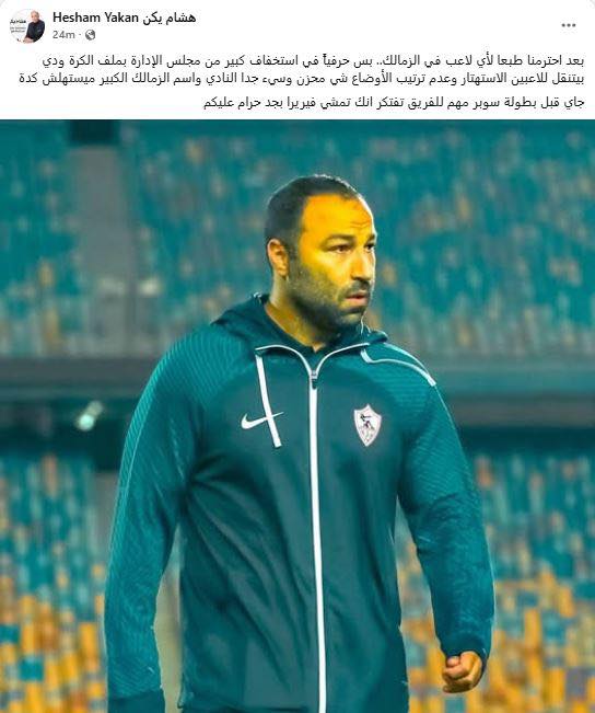 وعبر صفحته الشخصية على موقع التواصل الاجتماعى فيس بوك كتب هشام يكن معلقاً :