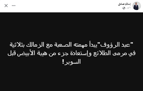 "عبد الرؤوف"يبدأ مهمته الصعبة مع الزمالك بثلاثية في مرمى الطلائع وإستعادة جزء من هيبة الأبيض قبل السوبر!