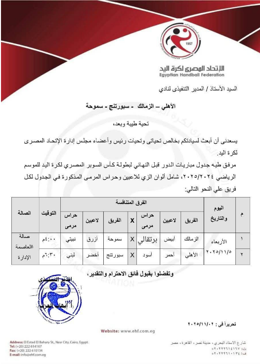 أعلن الاتحاد المصري لكرة اليد تفاصيل جدول مباريات الدور نصف النهائي لبطولة كأس السوبر المصري.