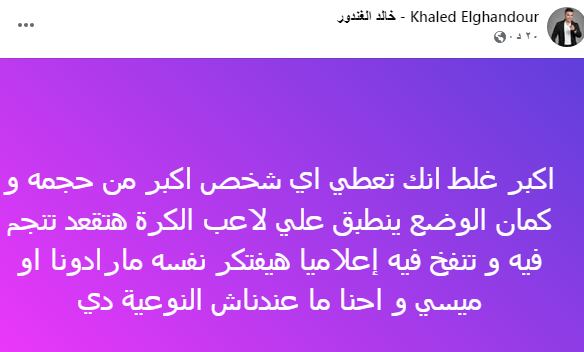 ولم يكشف الغندور ما اذا كان يقصد لاعب محدد أم كلامه كلام عام