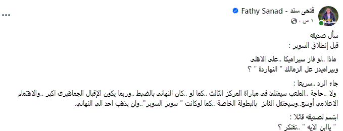 وكتب فتحي سند من خلال حسابه على موقع التواصل الاجتماعي فيسبوك قائلا: