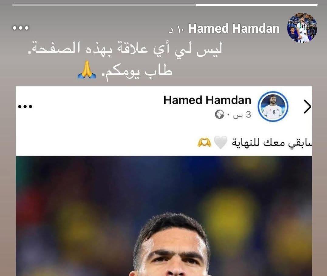 نفى الفلسطينى حامد حمدان لاعب نادى بتروجيت امتلاكه لإحدى الصفحات على موقع التواصل الاجتماعى فيس بوك.