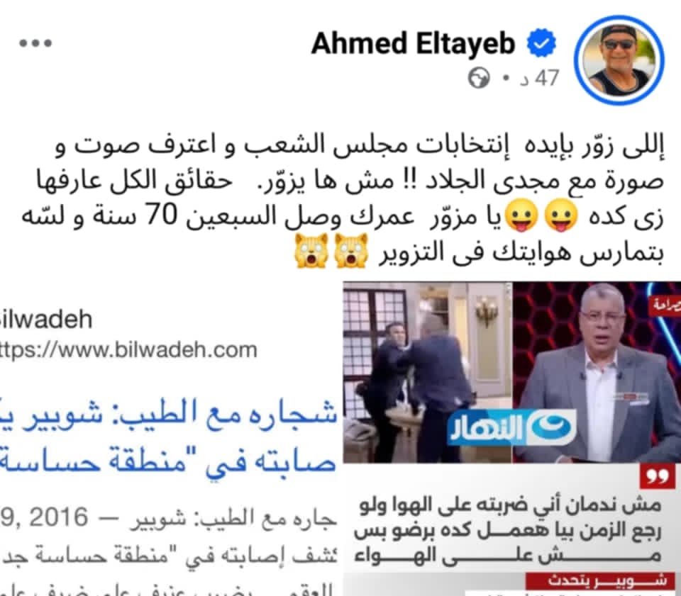 وعبر صفحته الشخصية على موقع التواصل الاجتماعى فيس بوك احمد الطيب رداً على تصريحات شوبير :