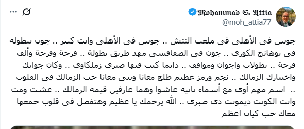لا يزال الحزن موجود وسيظل فى قلوب محبى محمد صبرى نجم الزمالك الراحل.