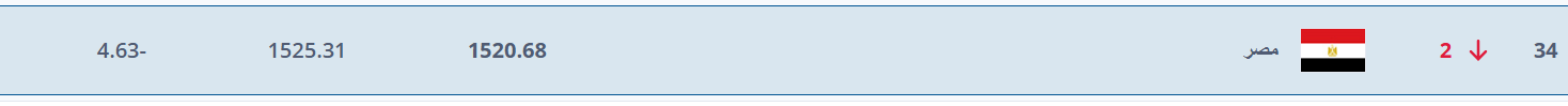 وشهد التصنيف تراجع منتخب مصر مركزين ليصبح في المرتبة 34 عالميًا، بدلا من المركز 32 الذي كان يشغله في شهر أكتوبر الماضي.